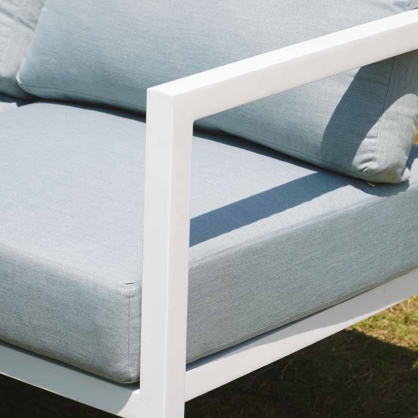 Đệm ngồi dày dặn, bọc vải chuyên dụng ngoài trời, mang lại cảm giác êm ái khi sử dụng, đồng thời dễ tháo rời để vệ sinh và bảo quản.