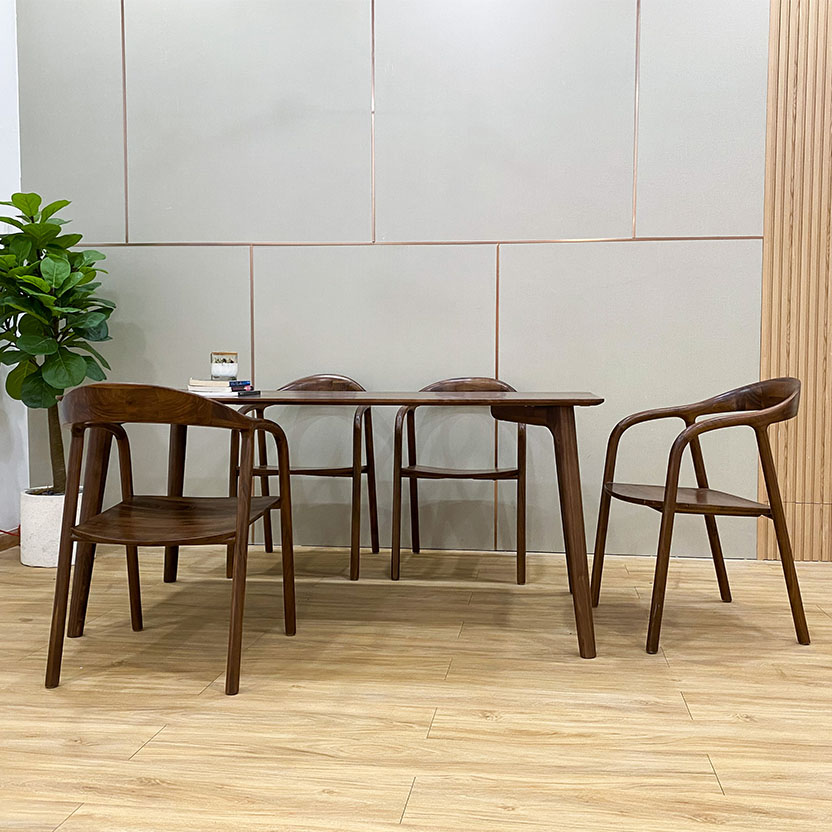 Bộ bàn ăn Classic có kích thước vừa đủ để không chiếm quá nhiều diện tích của phòng ăn. Chỉ cần một góc nhỏ bạn đã có một bữa cơm gia đình đầm ấm. Thiết kế mang phong cách Hàn quốc rất phù hợp với căn hộ chung cư, đặc biệt là các gia đình trẻ. Tuy đơn giản nhưng bộ bàn ăn gỗ walnut tự nhiên vẫn mang đến vẻ đẹp sang trọng, hiện đại cho không gian nhà bạn.