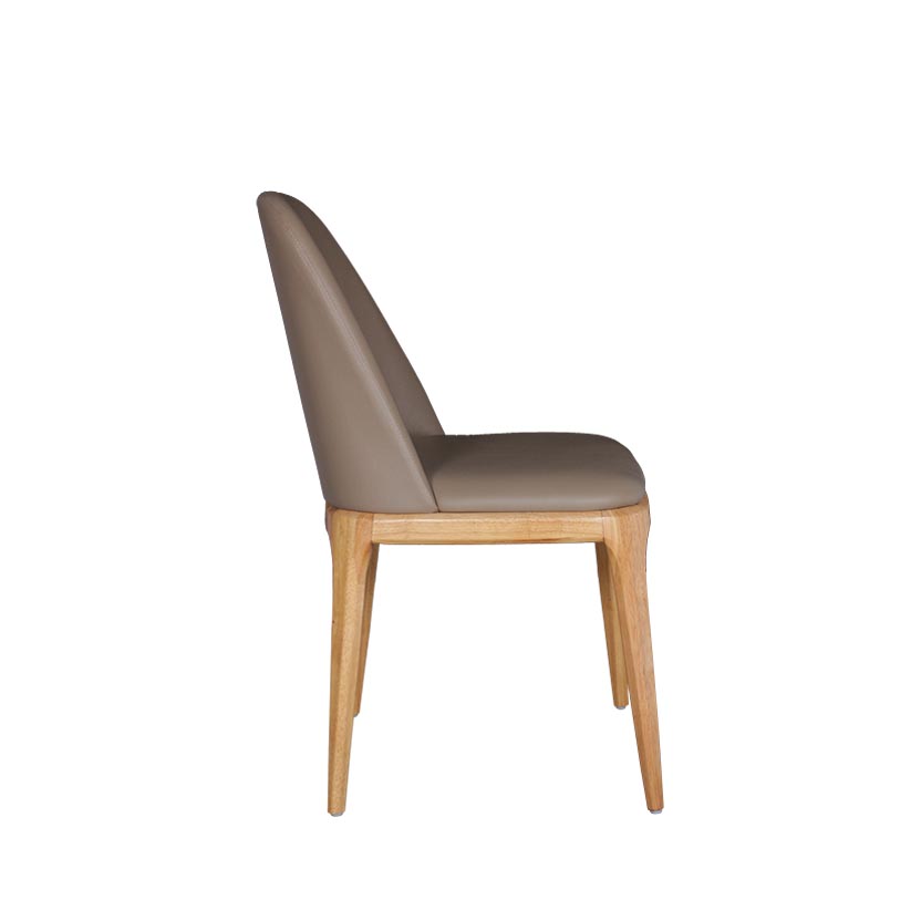 Phần tựa lưng được thiết kế cong nhẹ theo dáng ngồi tự nhiên, giúp nâng đỡ lưng một cách thoải mái khi sử dụng trong thời gian dài. Độ cao tựa lưng vừa phải, không quá lớn, mang lại cảm giác thanh thoát và phù hợp với nhiều kiểu bàn ăn khác nhau. Thiết kế này đặc biệt phù hợp với các không gian phòng ăn hiện đại, căn hộ chung cư, nhà phố hoặc các dự án nhà hàng – quán café yêu cầu sự đồng bộ và tinh gọn.