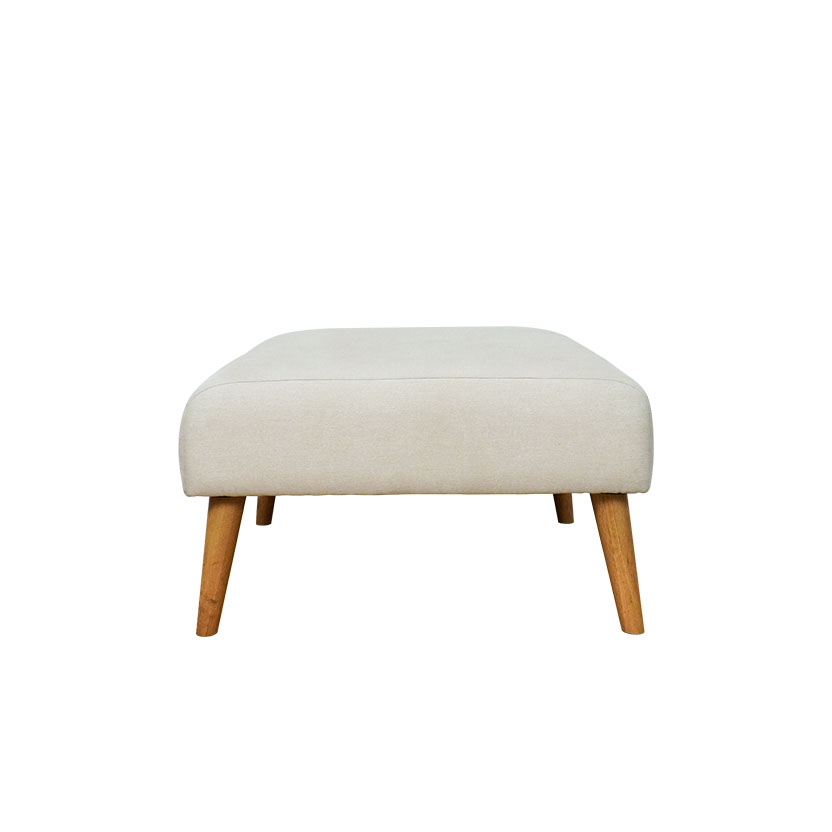 Phần mặt đôn có hình khối vuông bo tròn mềm mại ở các góc, giúp tổng thể trở nên thân thiện và dễ tiếp cận hơn. Thiết kế này không chỉ mang lại cảm giác an toàn khi sử dụng mà còn tạo nên sự cân đối, hài hòa về mặt thẩm mỹ. Lớp đệm ngồi được bọc vải màu sáng, mang đến vẻ ngoài trang nhã, sạch sẽ và sang trọng. Đây là một lựa chọn lý tưởng cho những không gian đề cao sự tinh giản và tinh tế.