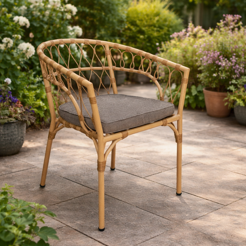 Không chỉ dừng lại ở công năng, ghế mây nhựa Catalina còn đóng vai trò như một điểm nhấn thẩm mỹ cho không gian. Tông màu trung tính kết hợp với bề mặt vân gỗ tự nhiên giúp sản phẩm dễ dàng hòa hợp với nhiều phong cách thiết kế khác nhau. Dù được đặt trong một khu vườn xanh mát, bên hồ bơi đầy nắng hay trong một quán café ngoài trời, Catalina đều góp phần tạo nên một không gian thư giãn tinh tế và có gu.
