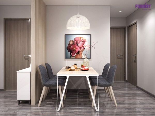 Sofa gam màu xám mang lại sự cân bằng màu sắc cho toàn bộ không gian. Không quá nổi bật nhưng chúng lại toát ra sự ấm áp, dễ chịu. Bộ sofa được bố trí góc phòng cân đối với bộ bàn ăn phòng bếp tạo nên một không gian hài hòa và ngăn nắp. Một lợi thế khi chúng ta sử dụng tone màu trung tính này đó là có thể kết hợp dễ dàng với các nội thất xung quanh. Chiếc sofa rộng ôm trọn phần góc kết hợp với chiếc gối ôm màu tối để chúng luôn giữ được sự êm dịu giúp gia đình bạn sẽ có được những phút giây giải trí, thư giãn thật vui vẻ bên nhau. Bên cạnh đó, khi được bố trí gần cửa sổ không gian này sẽ đón được nguồn ánh sáng tự nhiên trong lành, gần gũi mỗi ngày.