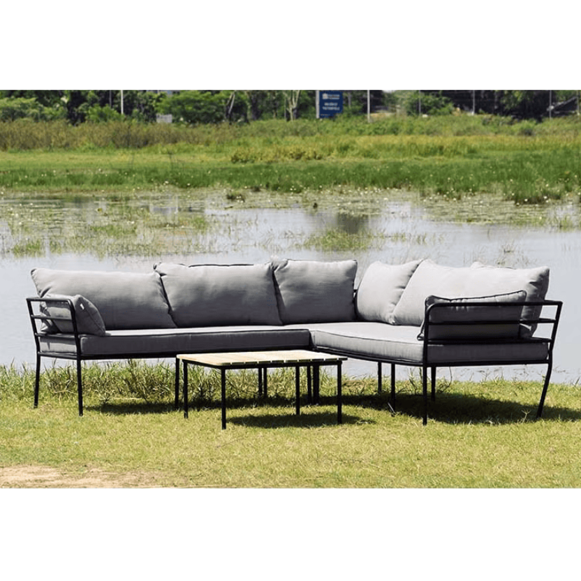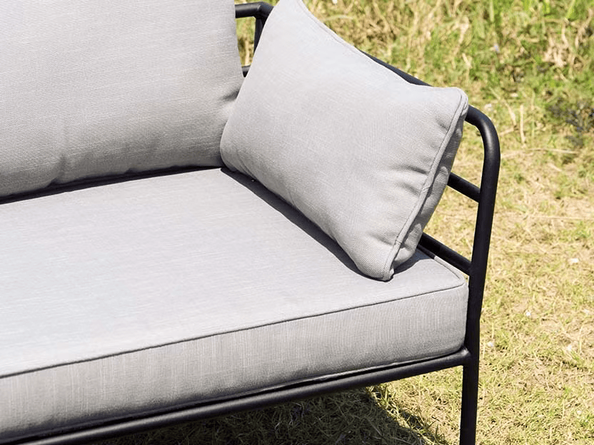 Bộ bàn ghế Kiev mang vẻ ngoài phóng khoáng, khung kim loại được sơn tĩnh điện màu đen cát sang trọng, không bong tróc và bền màu dưới điều kiện thời tiết thất thường. Đặc biệt nệm ngồi được sản xuất với chất liệu vải Linen, có khả năng chống thấm nước tự nhiên, giúp nệm không bị ẩm ướt khi tiếp xúc với nước mưa hoặc ẩm.