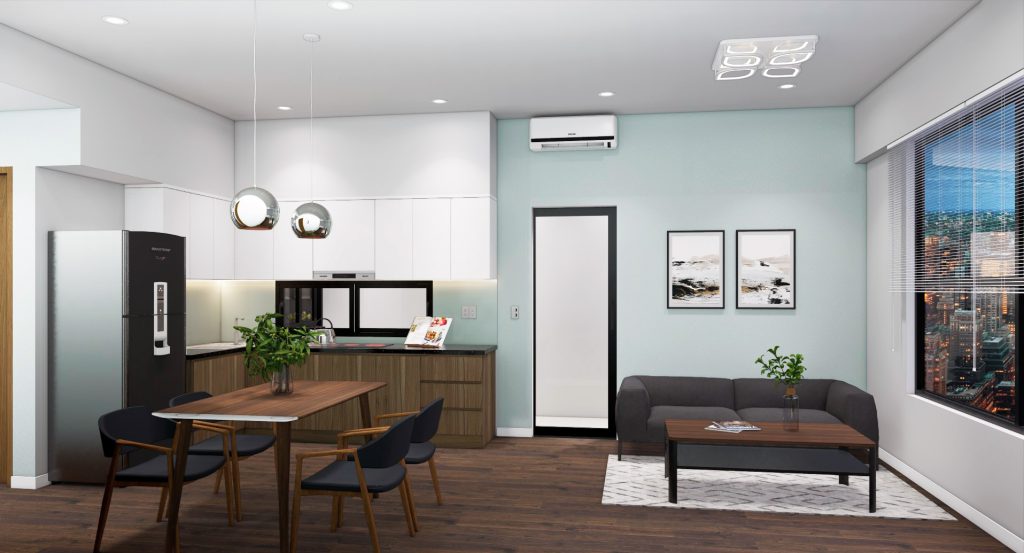 Với phòng khách chung cư hiện đại thường được thiết kế sẵn chung theo cả toà nhà, các khu vực chức năng liên thông với nhau. Do đó, xu hướng chọn mua sofa da phòng khách mang âm hưởng Bắc Âu với thiết kế đơn giản, nhẹ nhàng, phong cách khác biệt cùng gam màu tối giản sẽ rất phù hợp.